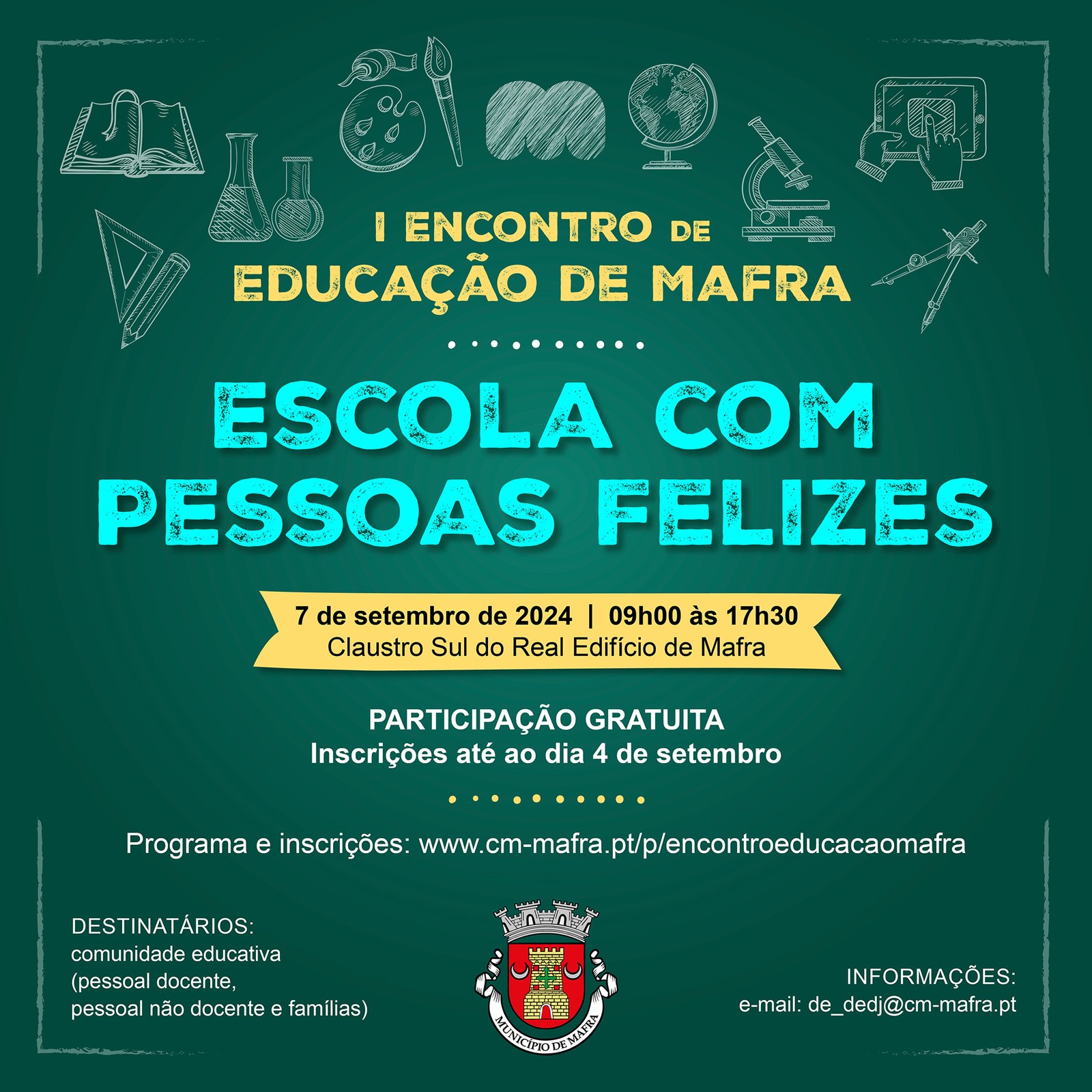 “Escola com Pessoas Felizes” é o tema do I Encontro de Educação de Mafra, destinado à comunidade educativa (pessoal docente, não docente e famílias), que traz a debate assuntos relacionados com a importância da leitura na aprendizagem, o papel das escolas no desenvolvimento dos alunos, bem como o impacto das novas tecnologias e redes sociais no crescimento das crianças.