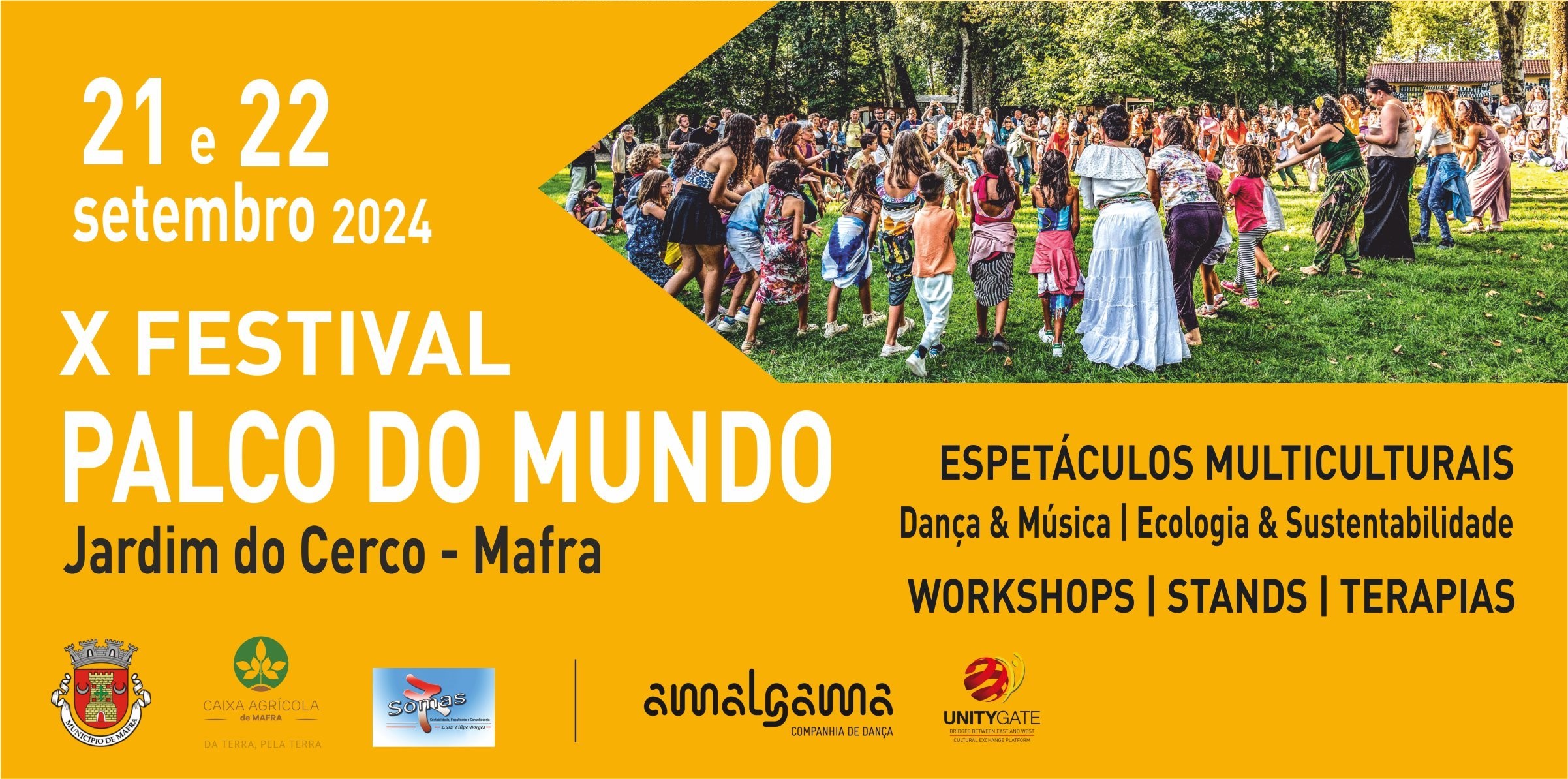 Diferentes nacionalidades e culturas voltam a estar reunidas no Festival Palco do Mundo, que regressa ao Jardim do Cerco (Mafra), nos próximos dias 21 e 22 de setembro. Num encontro único de gentes, artes, saberes e ofícios, o programa conta com espetáculos multiculturais de música e dança, com grupos itinerantes e artistas de quatro continentes, para além de workshops temáticos e uma zona de venda de produtos sustentáveis.
