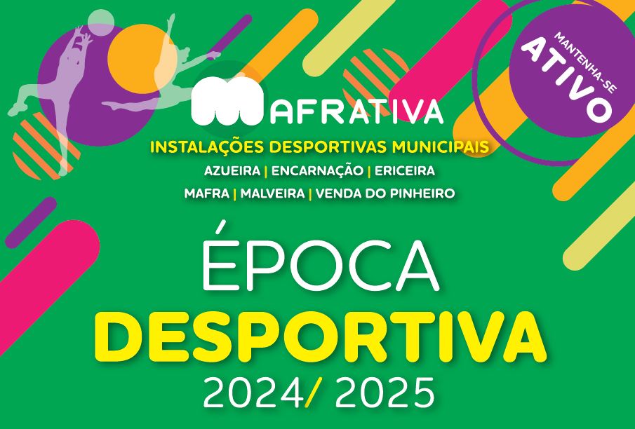 Está a decorrer a Época Desportiva 2024/ 2025 nas instalações desportivas municipais de Mafra, Ericeira, Malveira, Venda do Pinheiro, Encarnação e Azueira. Os utentes poderão desfrutar de uma oferta diversificada, com diferentes modalidades, que podem ser praticadas de forma individual ou em grupo.