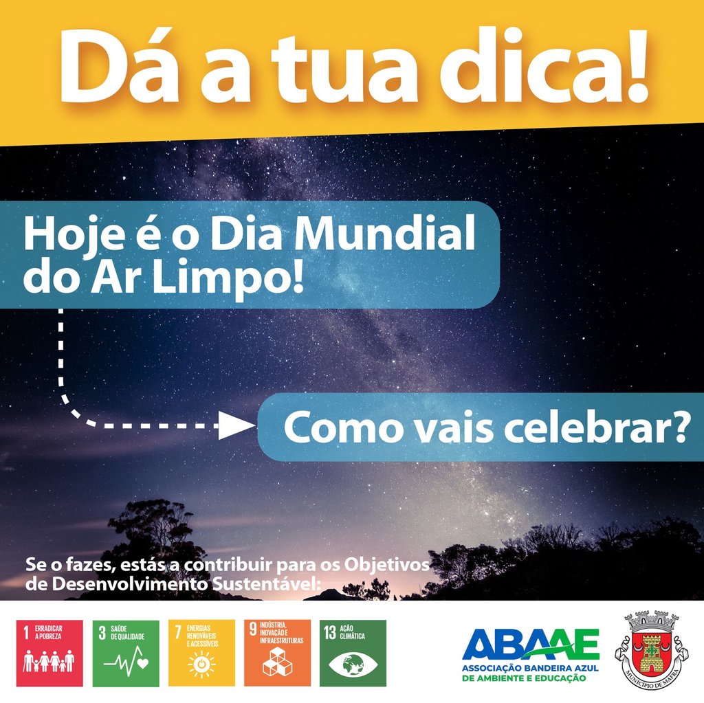 Sabias que a poluição atmosférica é uma das principais causas das alterações climáticas e de inúmeros problemas de saúde ambiental e humana? Neste Dia Mundial do Ar Limpo, participa no desafio “Dá a tua Dica” e partilha a tua opinião e/ou sugestões sustentáveis e de proteção ambiental.