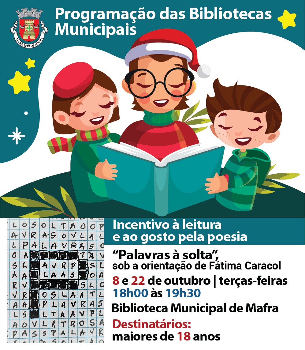 A Biblioteca Municipal de Mafra volta a receber sessões de leitura para adultos, num incentivo ao gosto pela poesia. A oficina “Palavras à solta”, orientada por Fátima Caracol, realiza-se nos dias 8 e 22 de outubro, das 18h00 às 19h30.