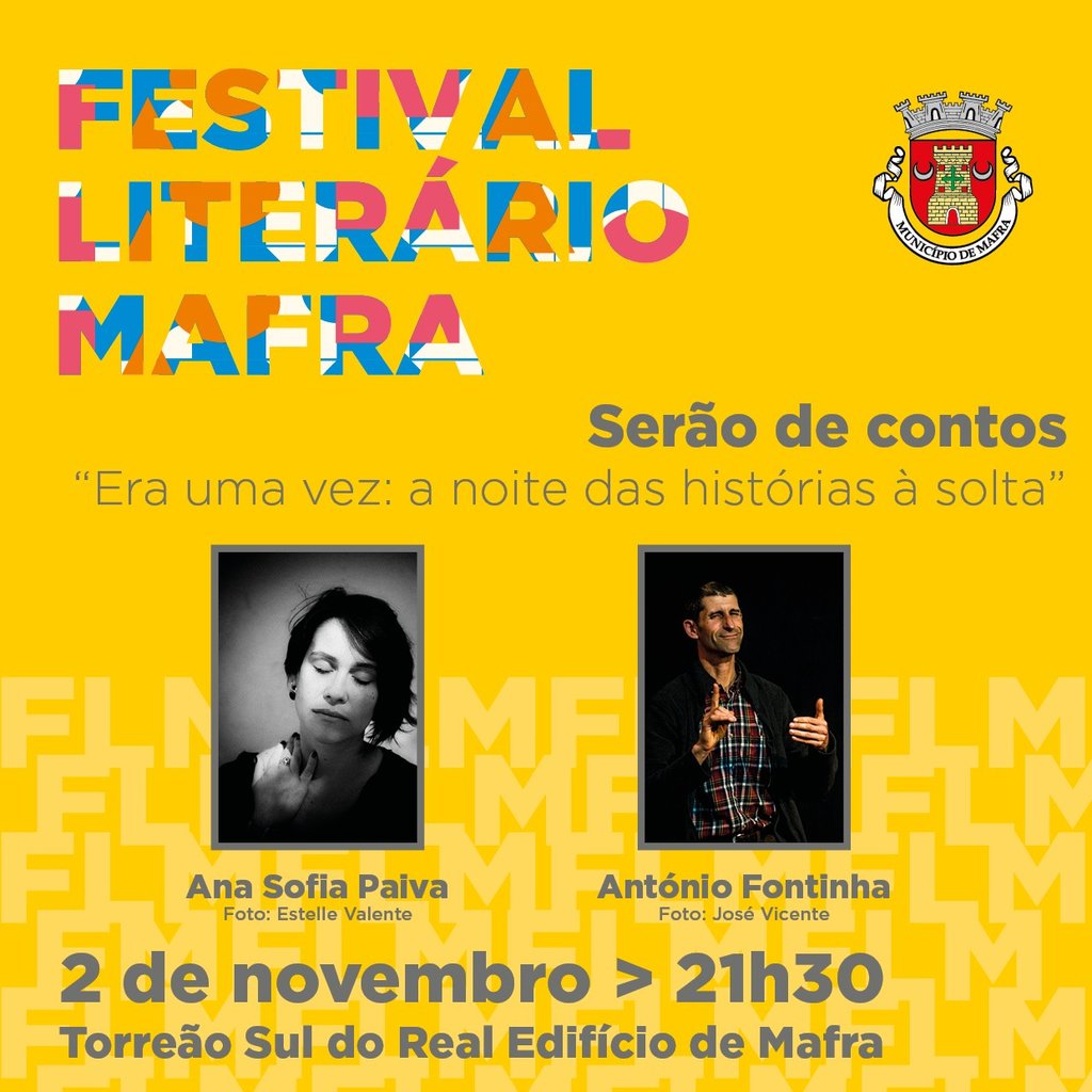 Ana Sofia Paiva e António Fontinha vão dar asas ao imaginário tradicional, no Festival Literário de Mafra. Não perca, o serão de contos “Era uma vez: a noite das histórias à solta”, no dia 2 de novembro, às 21h30, no Torreão Sul do Real Edifício de Mafra.
