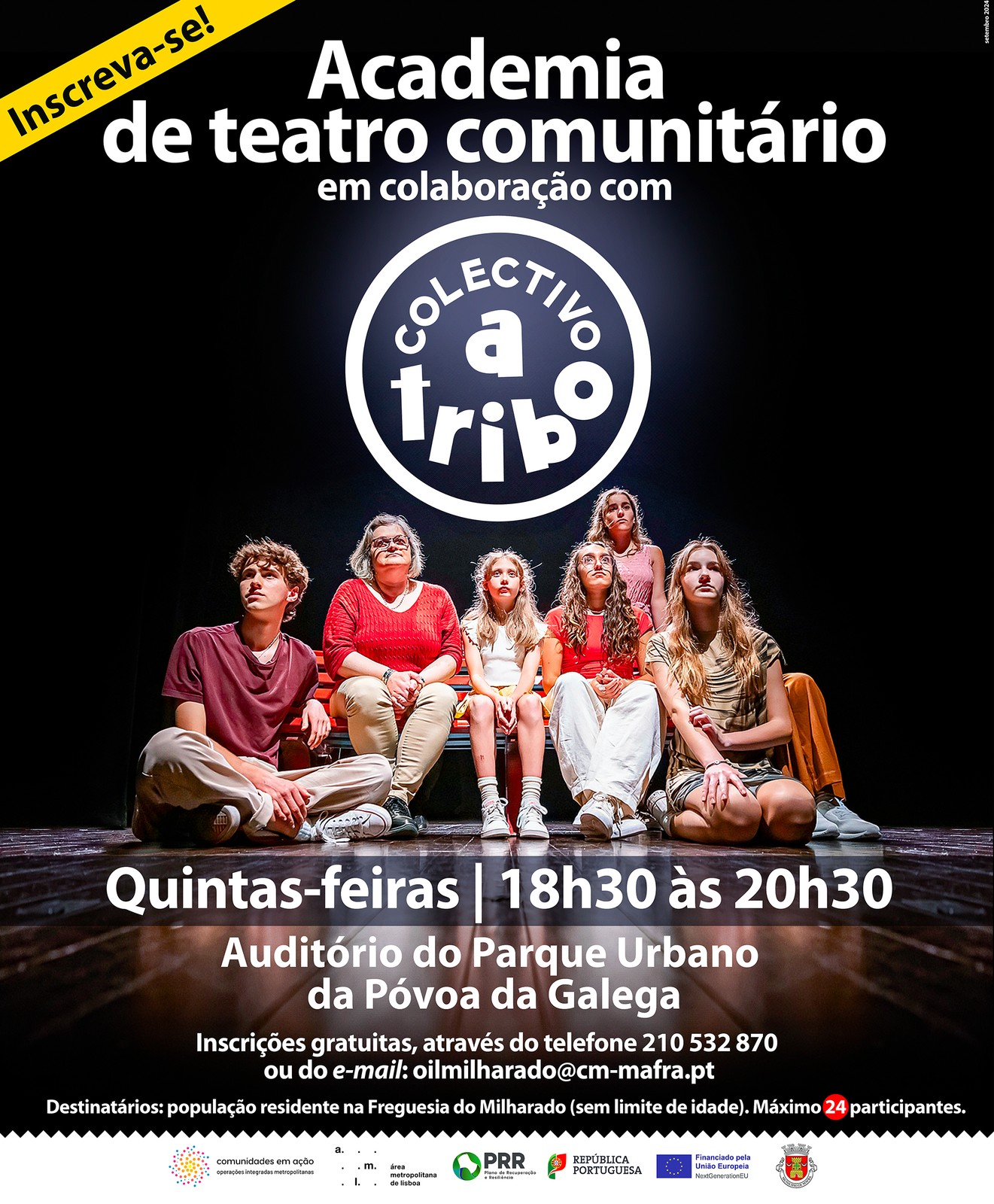 Já te inscreveste na nova Academia de Teatro Comunitário? Do que estás à espera? Se gostas de teatro e gostavas de contracenar, junta-te a nós, às quintas-feiras, das 18h30 às 20h30 (novo horário), no Auditório do Parque Urbano da Póvoa da Galega. Participação gratuita, aberta a todas as idades.