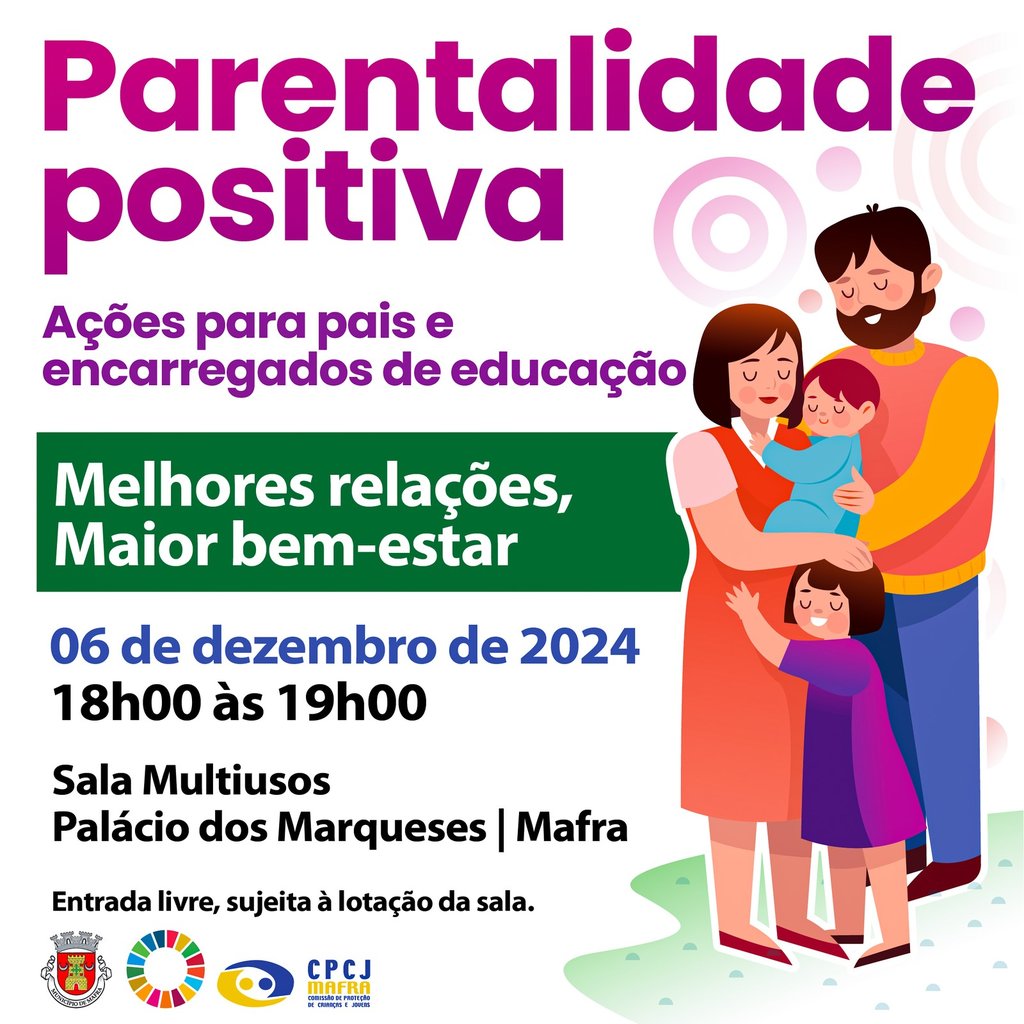No próximo dia 6 de dezembro, às 18h00, o Palácio dos Marqueses (Mafra) recebe mais uma sessão sobre “Parentalidade Positiva”, subordinada ao tema “Melhores relações, maior bem-estar”.