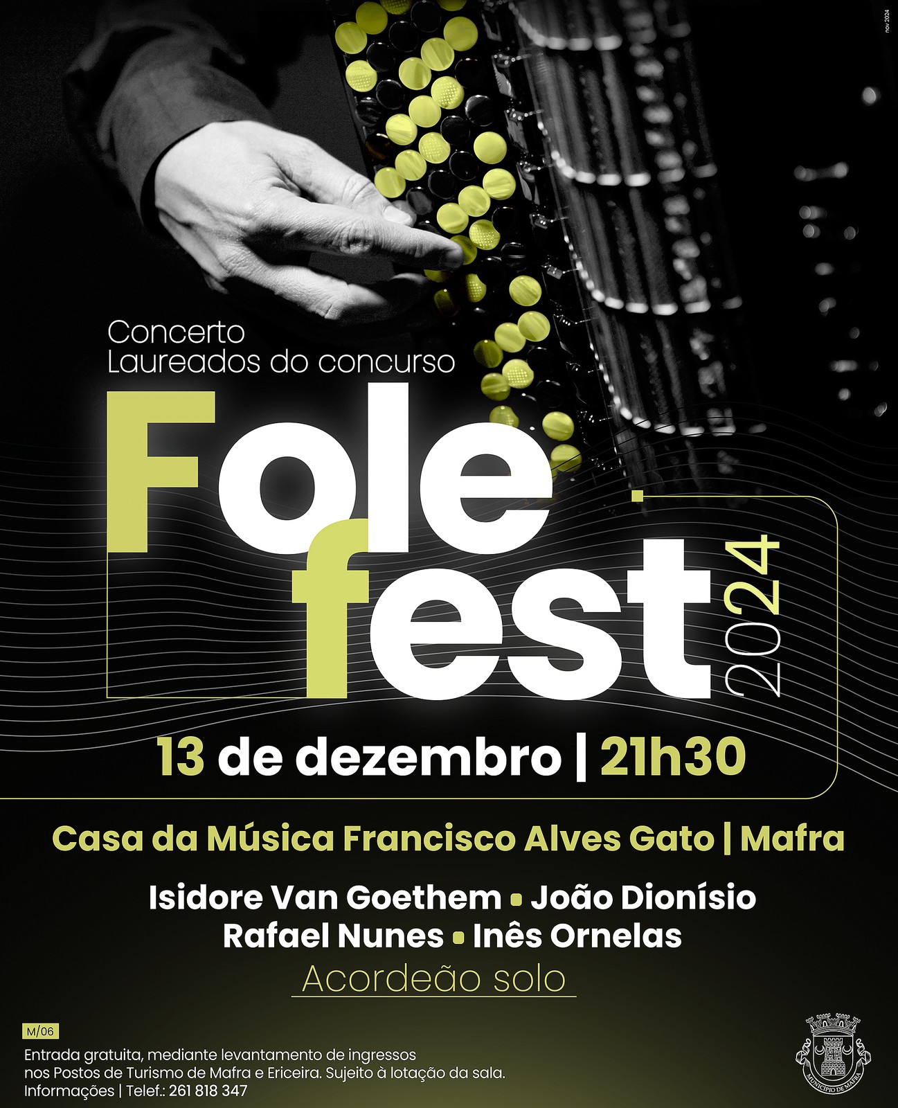 Os laureados do concurso de acordeão “Folefest” apresentam-se em concerto na Casa da Música Francisco Alves Gato, em Mafra, no dia 13 de dezembro, pelas 21h30.