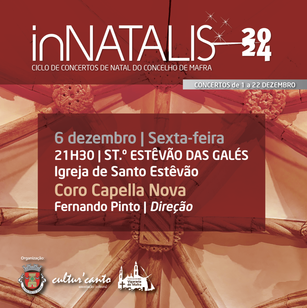 SANTO ESTÊVÃO DAS GALÉS. O Ciclo de Concertos de Natal continua a percorrer o Concelho de Mafra! Esta noite (6 dezembro), às 21h30, as mais conhecidas canções e melodias desta quadra festiva serão escutadas na Igreja de Santo Estêvão (Santo Estêvão das Galés), pelas vozes do Coro Capella Nova, dirigido por Fernando Pinto.