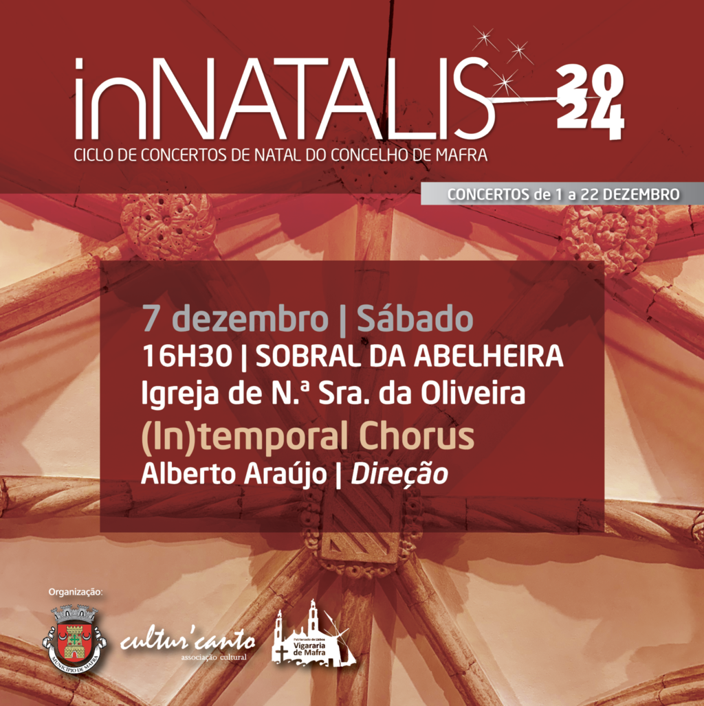 SOBRAL DA ABELHEIRA E BARREIRALVA. Hoje, 7 de dezembro, não perca os concertos especiais de Natal “In’Natalis”. Às 16h30, o (In)temporal Chorus, sob a direção de Alberto Araújo, anima a Igreja de N.ª Sr.ª da Oliveira (Sobral da Abelheira).