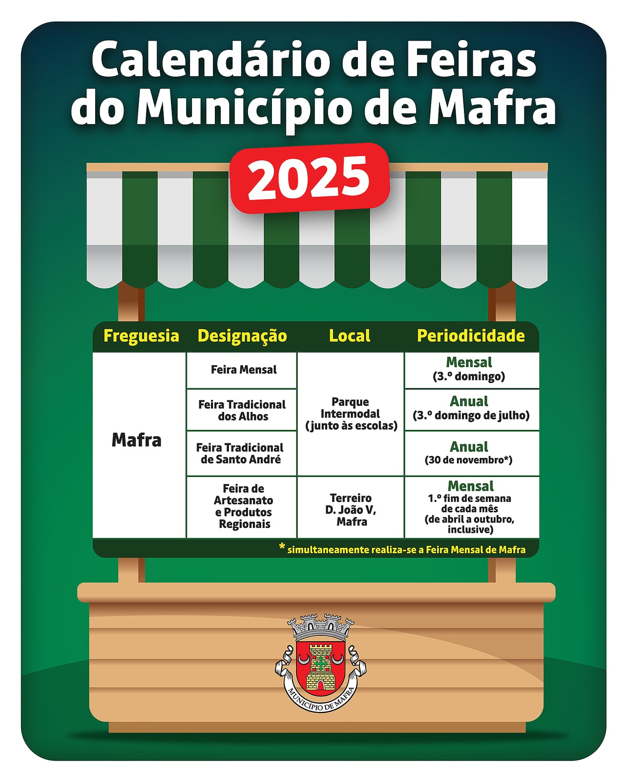 Calendário de feiras do Município de Mafra para 2025