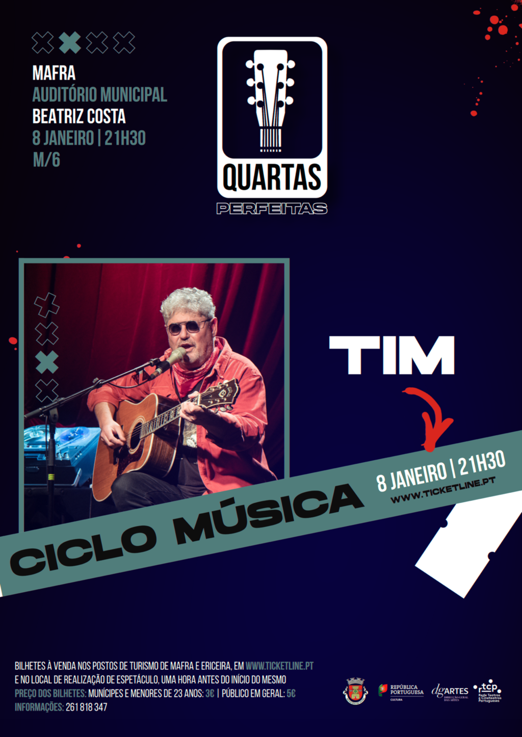 Tim, músico, compositor e membro da banda Xutos & Pontapés, é o protagonista do primeiro concerto do Ciclo de Música "Quartas Perfeitas" de 2025. O artista, que agora se apresenta a solo, sobe ao palco do Auditório Municipal Beatriz Costa (Mafra), no dia 8 de janeiro, às 21h30, para apresentar o espetáculo “Canta-me Histórias”, numa temporada única, repleta de memórias inesquecíveis e canções que marcaram o público.