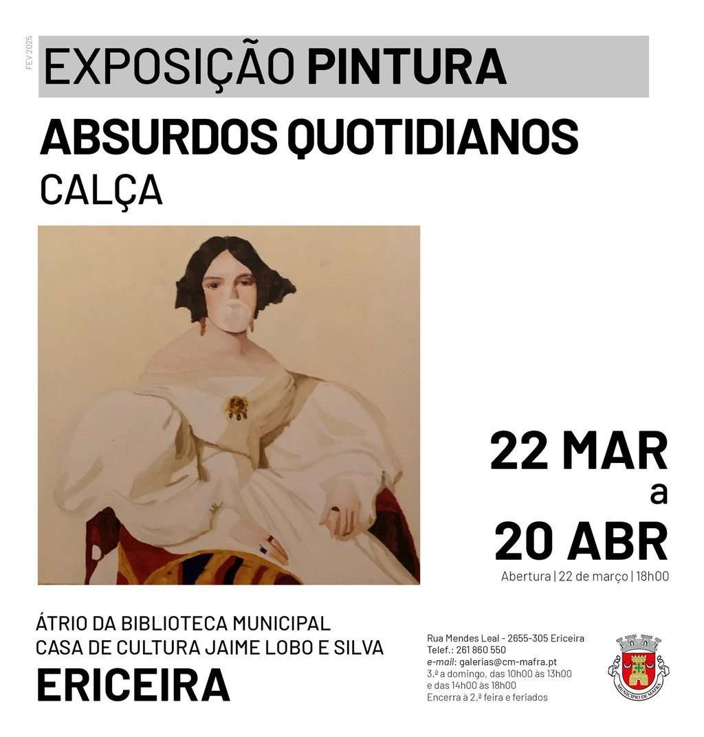 No mesmo dia (22 de março, 18h00), é aberta ao público a exposição de pintura "Absurdos Quotidianos", de Calça. As obras estarão expostas no Átrio da Biblioteca Municipal da referida Casa de Cultura, até ao dia 20 de abril.