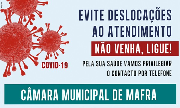 Evite deslocações ao atendimento. Não venha, ligue! Pela sua saúde vamos privilegiar o contacto por telefone.