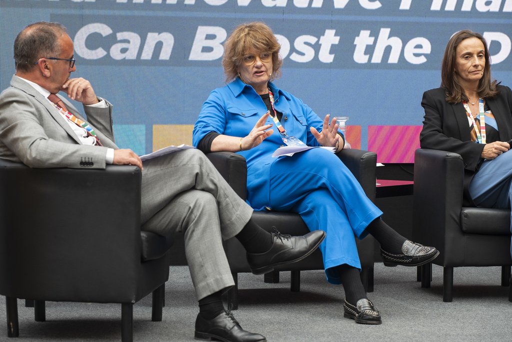 Sob o tema “Como as Parcerias Estratégicas e o Financiamento Inovador podem Impulsionar os ODS”, teve lugar a mesa-redonda moderada por Miguel Almeida, Presidente do Fundo de Apoio Municipal, na qual intervieram: Mariana Ribeiro Ferreira, Diretora de Cidadania e responsável pelo programa ESG da CUF; Manuela Nina Jorge, Presidente da Caixa de Crédito Agrícola Mútuo; Tânia Oliveira, Diretora na Systemic; e Eduardo Moura, Diretor ESG da EDP.