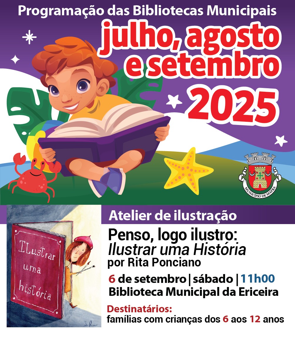 O atelier de ilustração “Penso, logo ilustro” regressa à Biblioteca Municipal da Ericeira, para uma manhã dedicada à ilustração de histórias. A atividade, dinamizada por Rita Ponciano, para crianças e jovens dos 6 aos 12 anos, realiza-se no dia 6 de setembro, às 11h00.