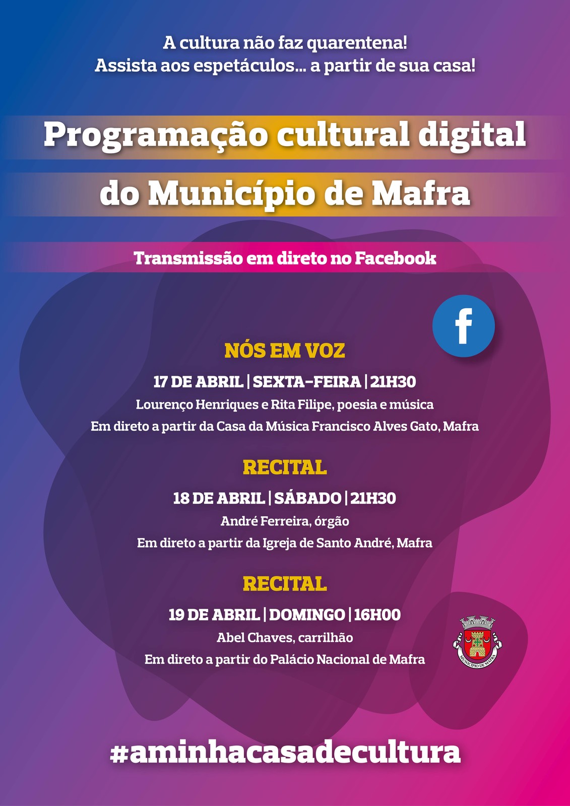 Com transmissão em direto no Facebook, os espetáculos decorrerão todas as sextas-feiras e sábados às 21h30 e aos domingos às 16h00, em parceria com os diretores artísticos dos festivais municipais e com muitos grupos e artistas locais. Desta forma, a Câmara Municipal pretende, também, contribuir para minimizar os prejuízos causados pela atual suspensão da atividade cultural, apoiando a sustentabilidade financeira dos agentes deste setor.