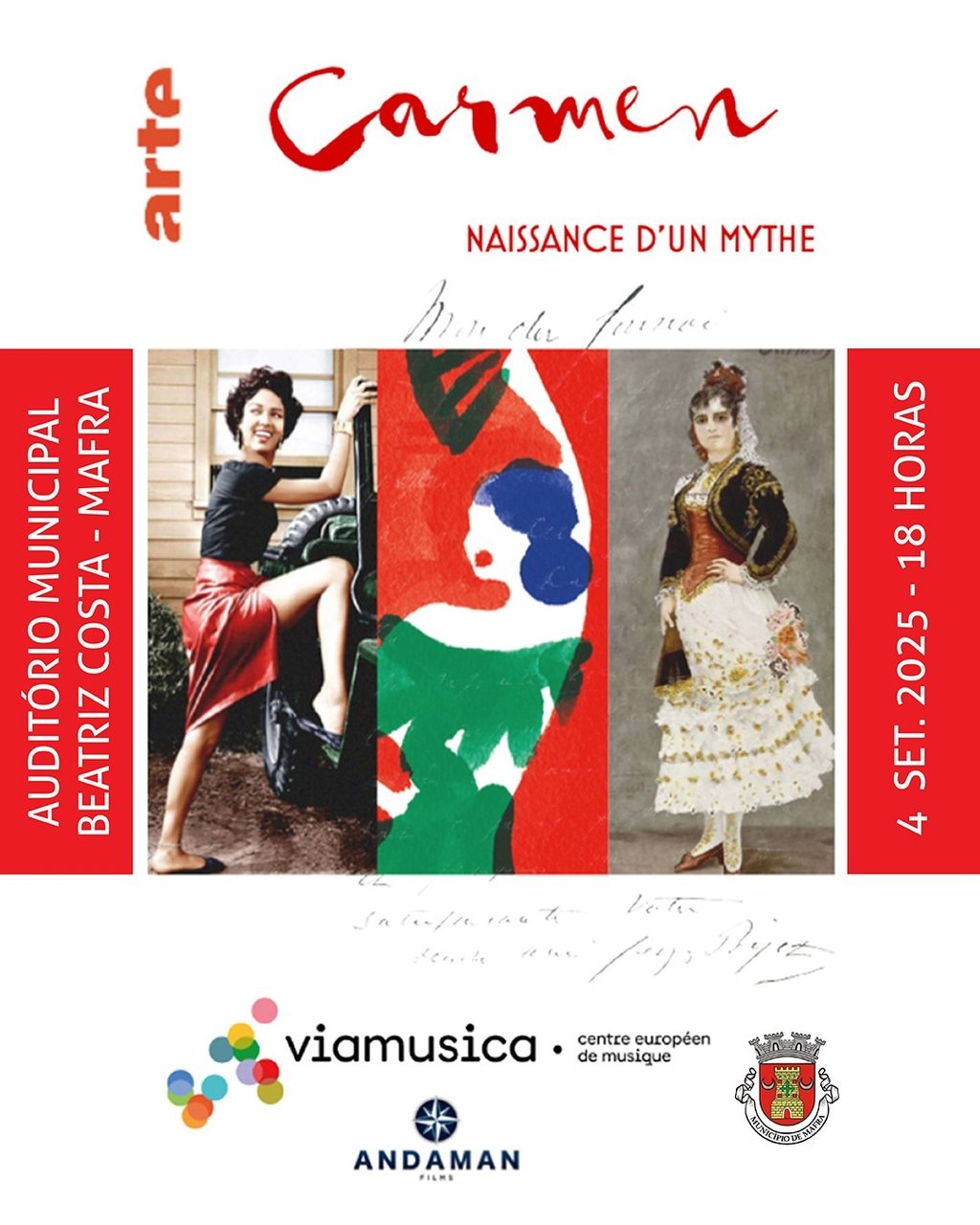 ATUALIZAÇÃO: EVENTO MUNICIPAL CANCELADO EM DIA DE LUTO NACIONAL. No dia 4 de setembro, às 18h00, o Auditório Municipal Beatriz Costa (Mafra) acolhe a estreia nacional do documentário “Carmen, the birth of a myth”, que explora a história da ópera francesa “Carmen”, de Georges Bizet, com testemunhos de músicos, cantores e investigadores, numa reflexão vibrante da figura de Carmen, que se tornou um ícone feminista. Entrada gratuita, sujeita à lotação da sala.