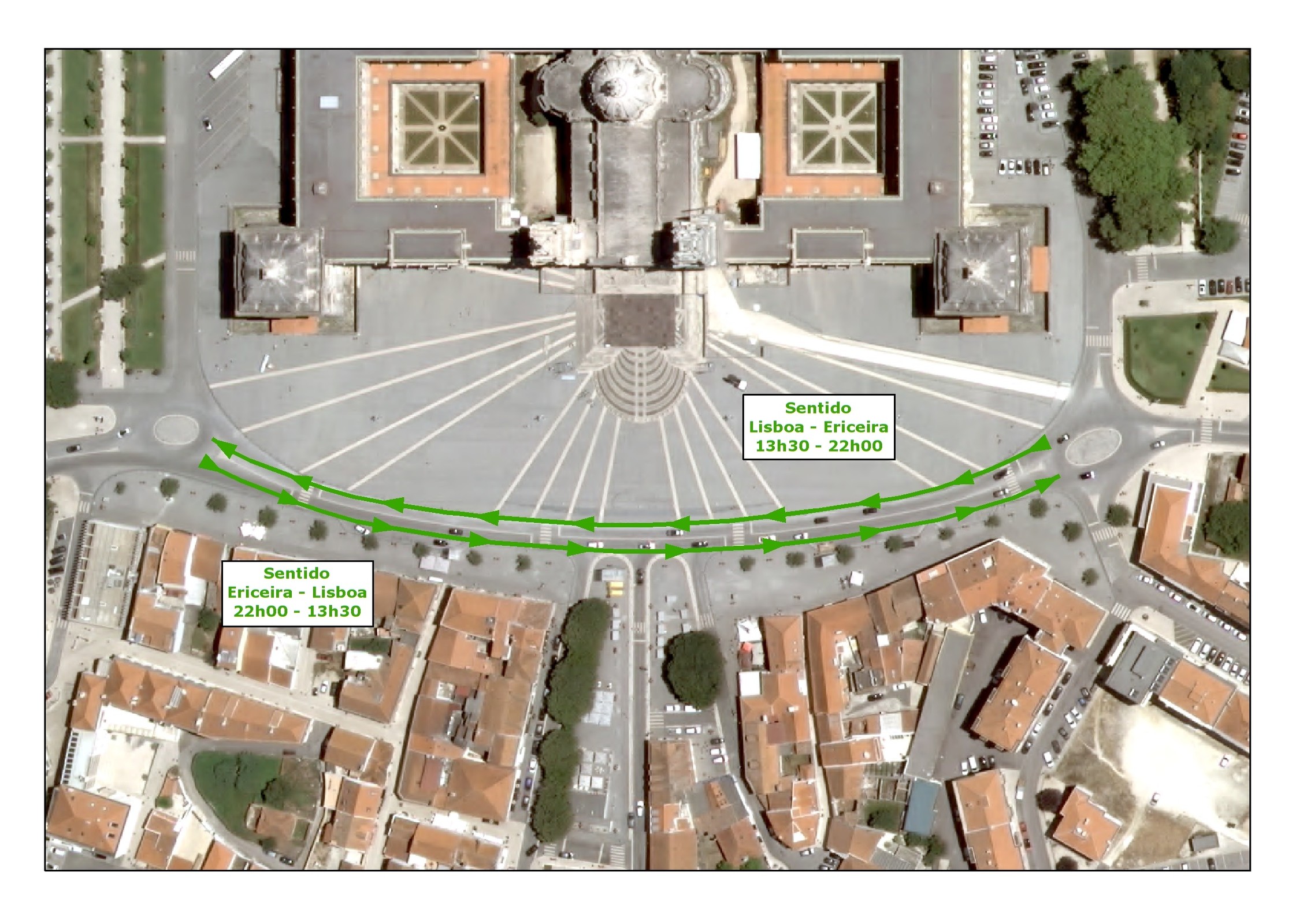 • Das 13h30 às 22h00, o trânsito apenas circula no sentido Lisboa/ Ericeira; • Das 22h00 às 13h30, o trânsito apenas circula no sentido Ericeira/ Lisboa.