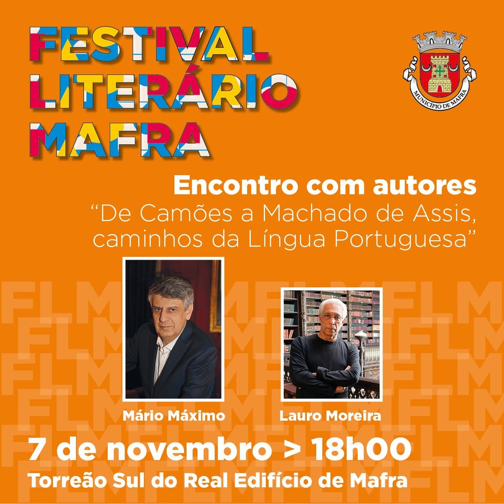"De Camões a Machado de Assis, caminhos da Língua Portuguesa" é o tema do primeiro encontro com autores, que integra o programa do Festival Literário de Mafra. No dia 7 de novembro, às 18h00, assista à sessão com os autores Mário Máximo e Lauro Moreira, no Torreão Sul do Real Edifício de Mafra.