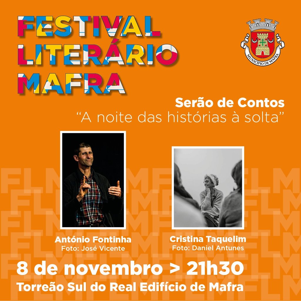 Cristina Taquelim e António Fontinha vão dar asas ao imaginário tradicional, no Festival Literário de Mafra. Não perca, o serão de contos "A noite das histórias à solta", no dia 8 de novembro, às 21h30, no Torreão Sul do Real Edifício de Mafra.