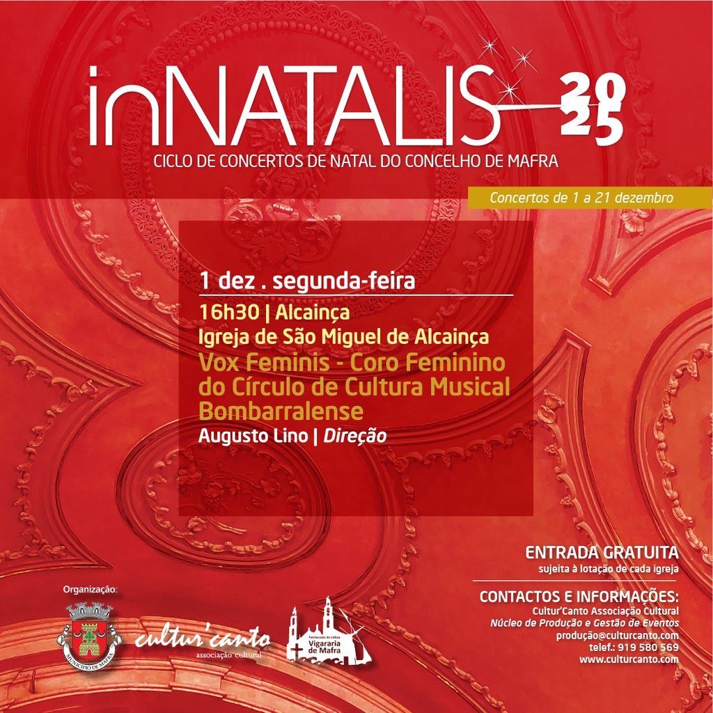 As mais conhecidas músicas de Natal vão começar a tocar no Concelho de Mafra! O primeiro concerto 𝐈𝐧'𝐍𝐚𝐭𝐚𝐥𝐢𝐬 está marcado para o dia 𝟏 𝐝𝐞 𝐝𝐞𝐳𝐞𝐦𝐛𝐫𝐨, às 16h30, na Igreja de S. Miguel de Alcainça.