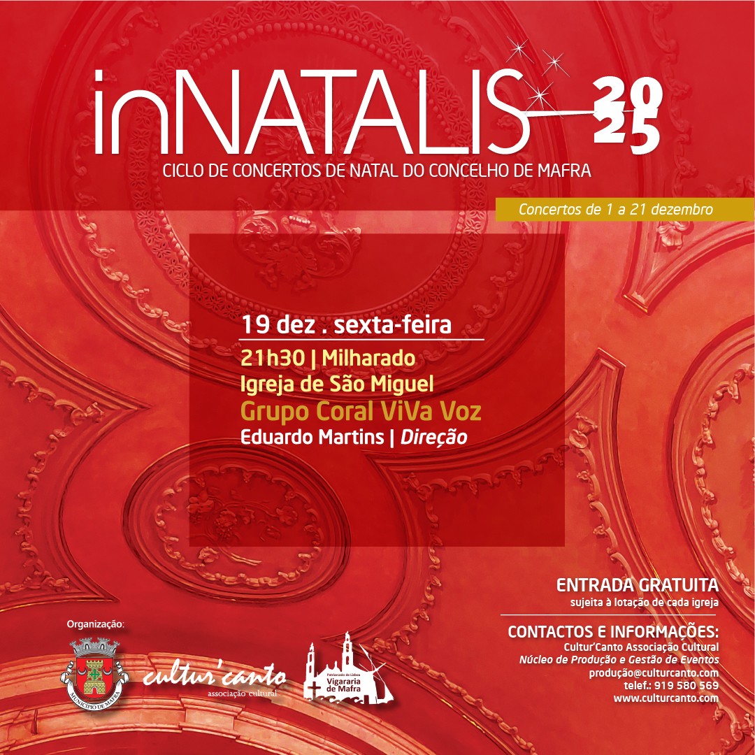 Milharado. Esta noite (sexta-feira, 19 de dezembro), às 21h30, assista a mais um concerto In’Natalis, na Igreja de São Miguel. As mais conhecidas músicas de Natal vão ser interpretadas pelo Grupo Coral ViVa Voz, sob a direção de Eduardo Martins.