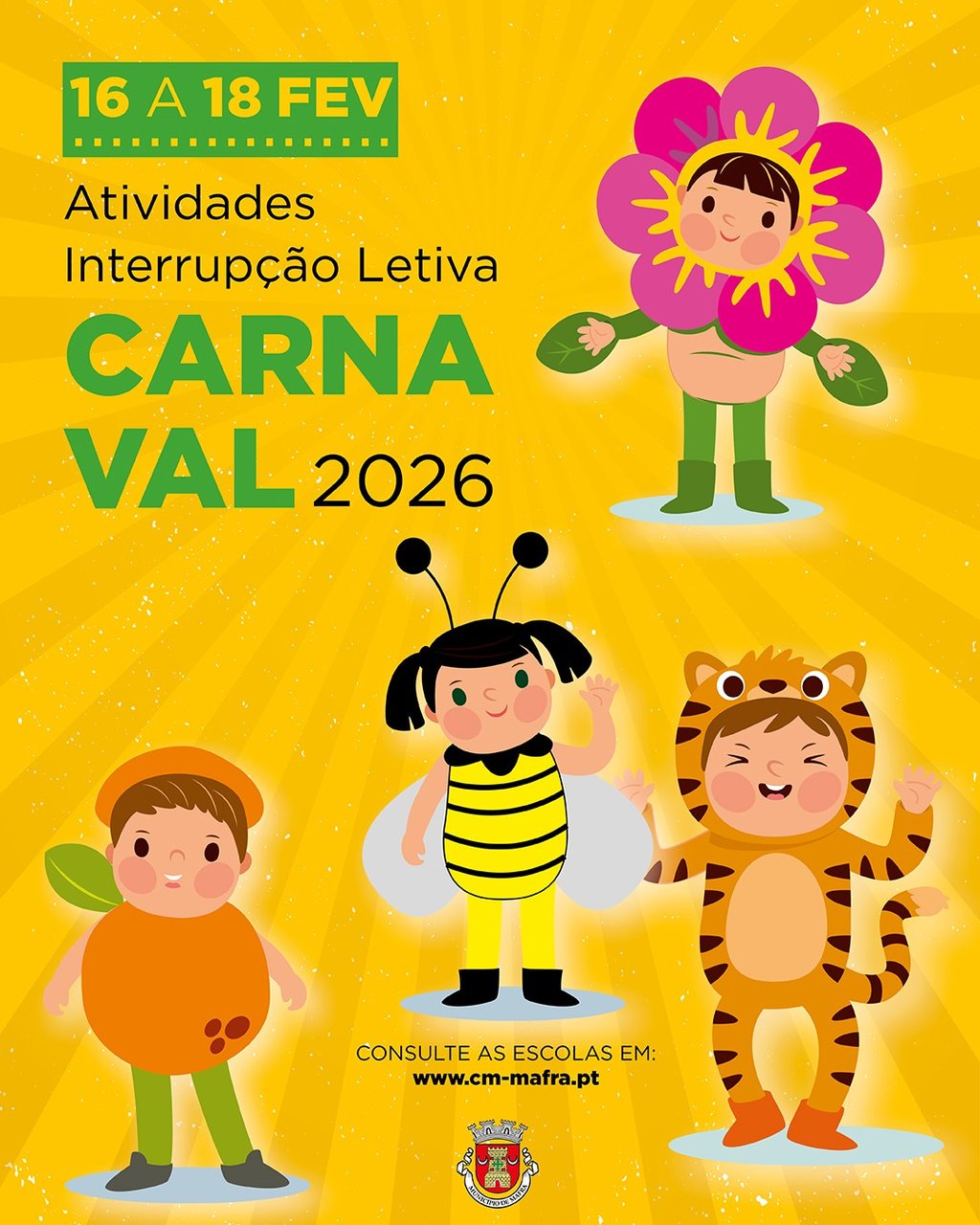 De 16 a 18 de fevereiro, os mais pequenos vão poder divertir-se em atividades lúdicas, desportivas e culturais! O programa de ocupação de tempos livres está de volta, durante a interrupção letiva de Carnaval, para crianças da educação pré-escolar e do 1.º ciclo do ensino básico.