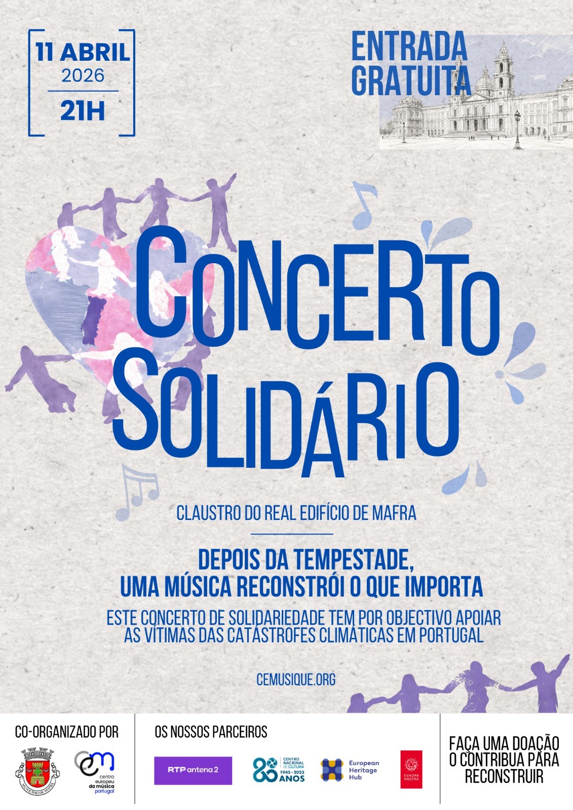 No dia 11 de abril, às 21h00, o Claustro Sul do Real Edifício de Mafra recebe um concerto solidário e de apoio às comunidades e ao património cultural afetado pelas intempéries que marcaram o início de 2026. “Depois da Tempestade” é o tema do espetáculo, que junta oito artistas (re)conhecidos, com temas que atravessam o Fado, o jazz, a música clássica e tradicional.