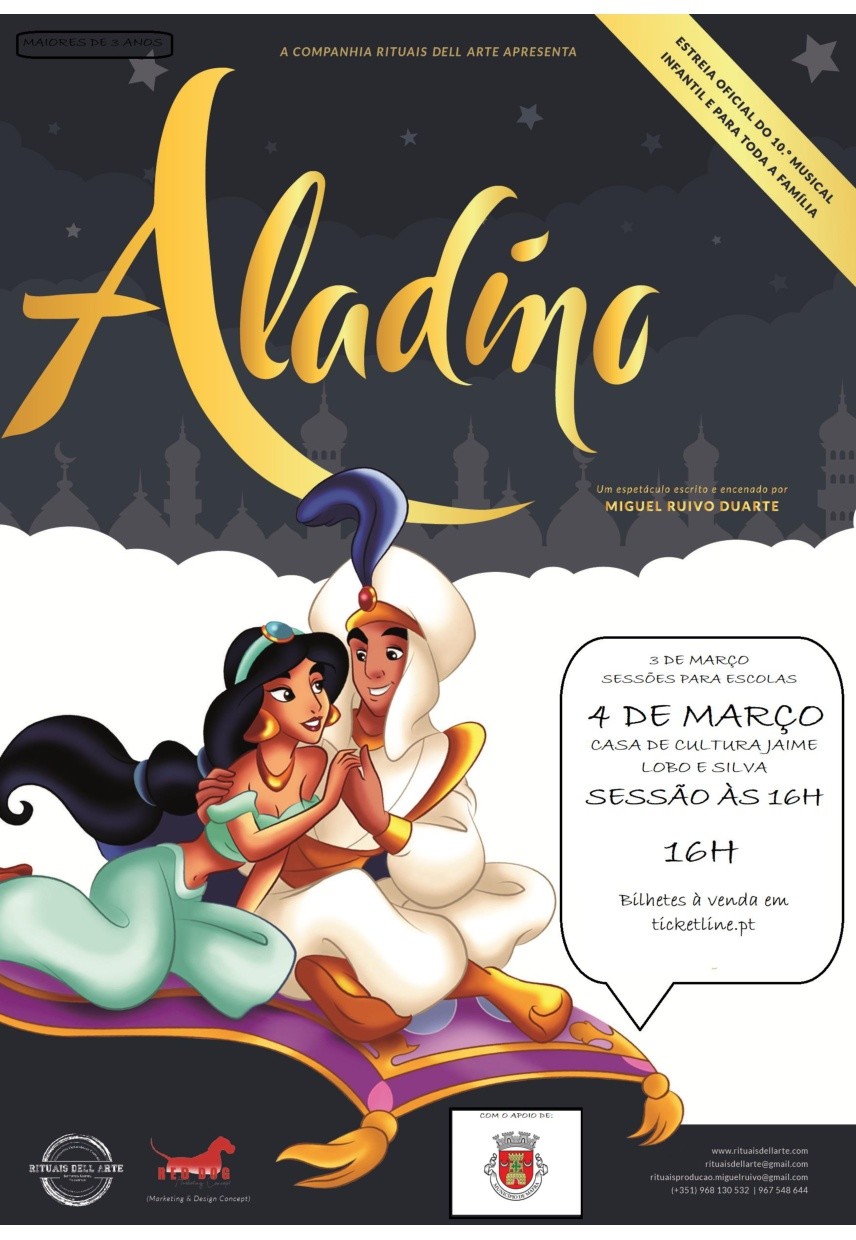 Adicionar a calendário2023-03-04 00:00:002023-03-04 00:00:00Europe/LisbonEspetáculo "Aladino"Auditório da Casa de Cultura Jaime Lobo e Silva - EriceiraRituais Dell Arte