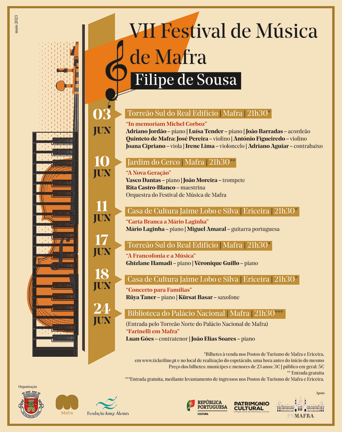 Bilhetes à venda nos Postos de Turismo de Mafra e Ericeira, em www.ticketline.pt e no local de realização do concerto, uma hora antes do início do espetáculo.