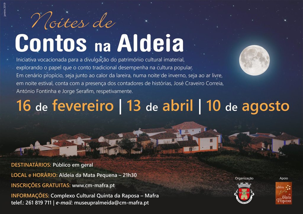 Iniciativa vocacionada para divulgação do património cultural imaterial, explorando o papel que o conto tradicional desempenha na cultura popular. Em cenário propício, junto ao calor da lareia, numa noite de inverno, seja ao ar livre, em noite estival, conta com a presença do contador de histórias, José Craveiro Correia.