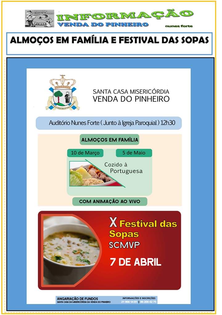 Adicionar a calendário2019-03-05 12:30:002019-03-05 12:30:00Europe/LisbonAlmoços em FamíliaCozido à Portuguesa | Animação ao vivoAuditório Nunes Forte (junto à Igreja Paroquial) - Venda do Pinheiro