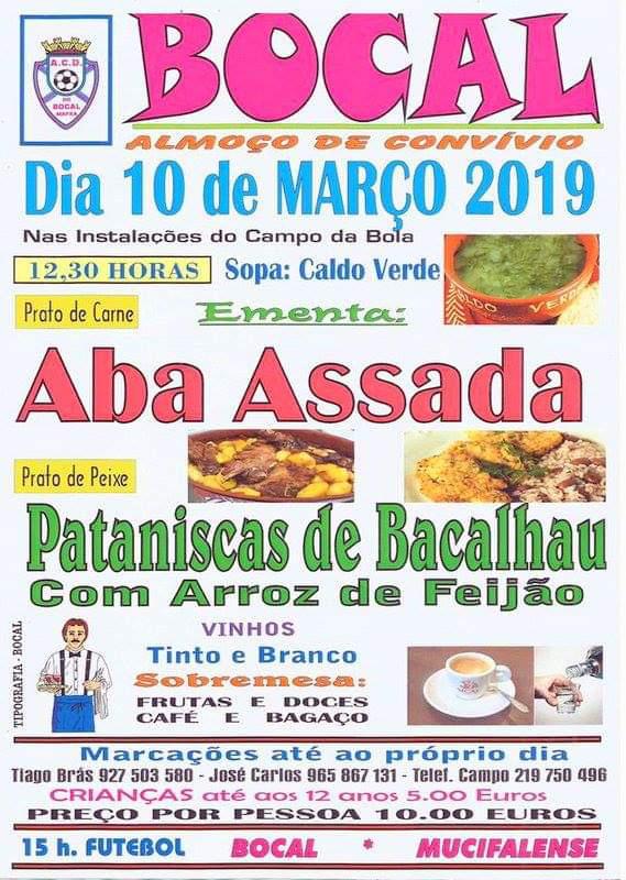 12h30 - Almoço | 15h00 - Jogo de futebol Bocal vs Mucifalense