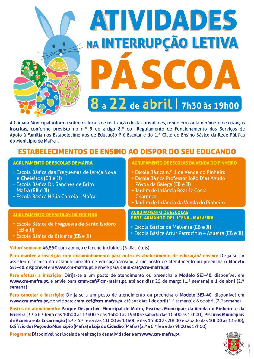 Atividades lúdicas, desportivas e culturais, incluindo ateliers didáticos (regulamento próprio e programas disponíveis em www.cm-mafra.pt)