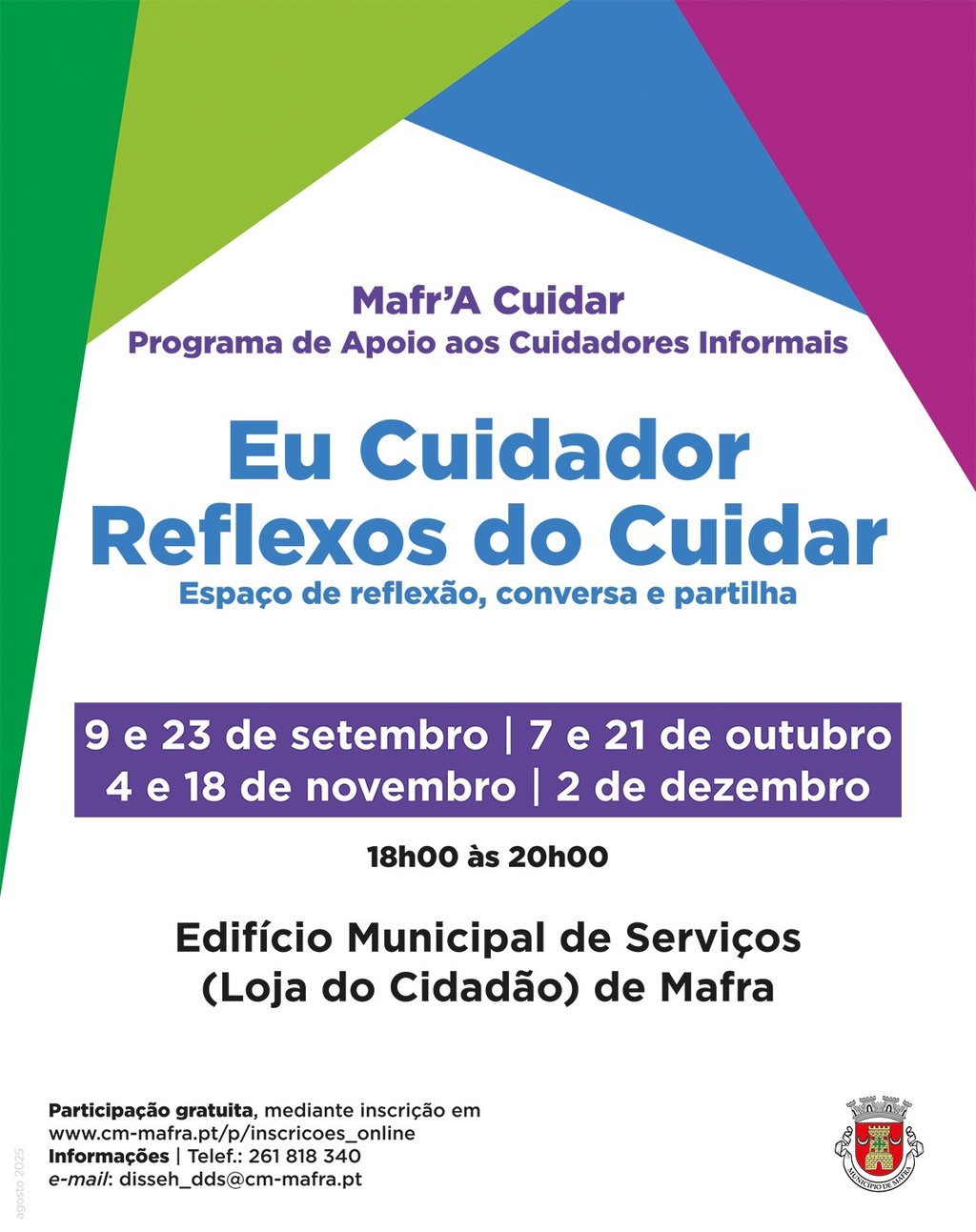 Adicionar a calendário2025-10-07 00:00:002025-10-07 00:00:00Europe/LisbonMafr'A Cuidar - Programa de Apoio aos Cuidadores informaisEdifício Municipal de Serviços (Loja do Cidadão) - Mafra