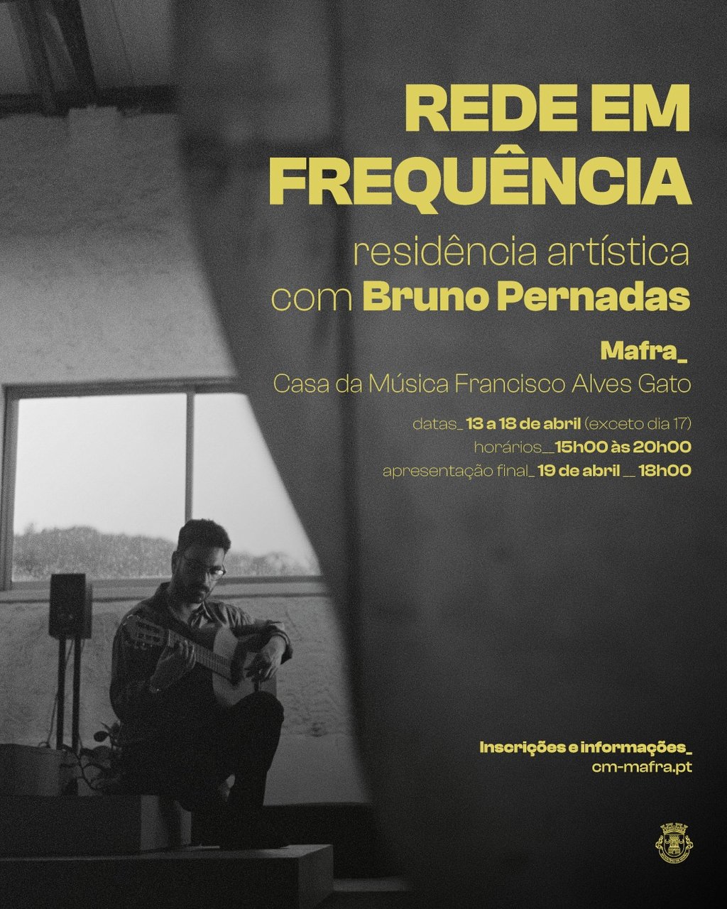 Adicionar a calendário2026-04-13 00:00:002026-04-19 00:00:00Europe/LisbonResidência artística "Rede em Frequência"Tutoria: Bruno PernadasCasa da Música Francisco Alves Gato - Mafra