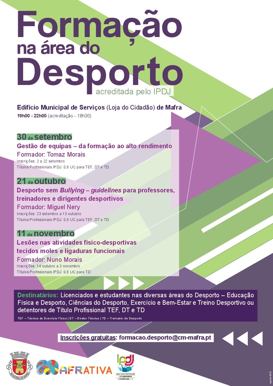 Adicionar a calendário2019-10-21 00:00:002019-10-21 00:00:00Europe/LisbonFormação na Área do DesportoEdifício Municipal de Serviços (Loja do Cidadão) - Mafra