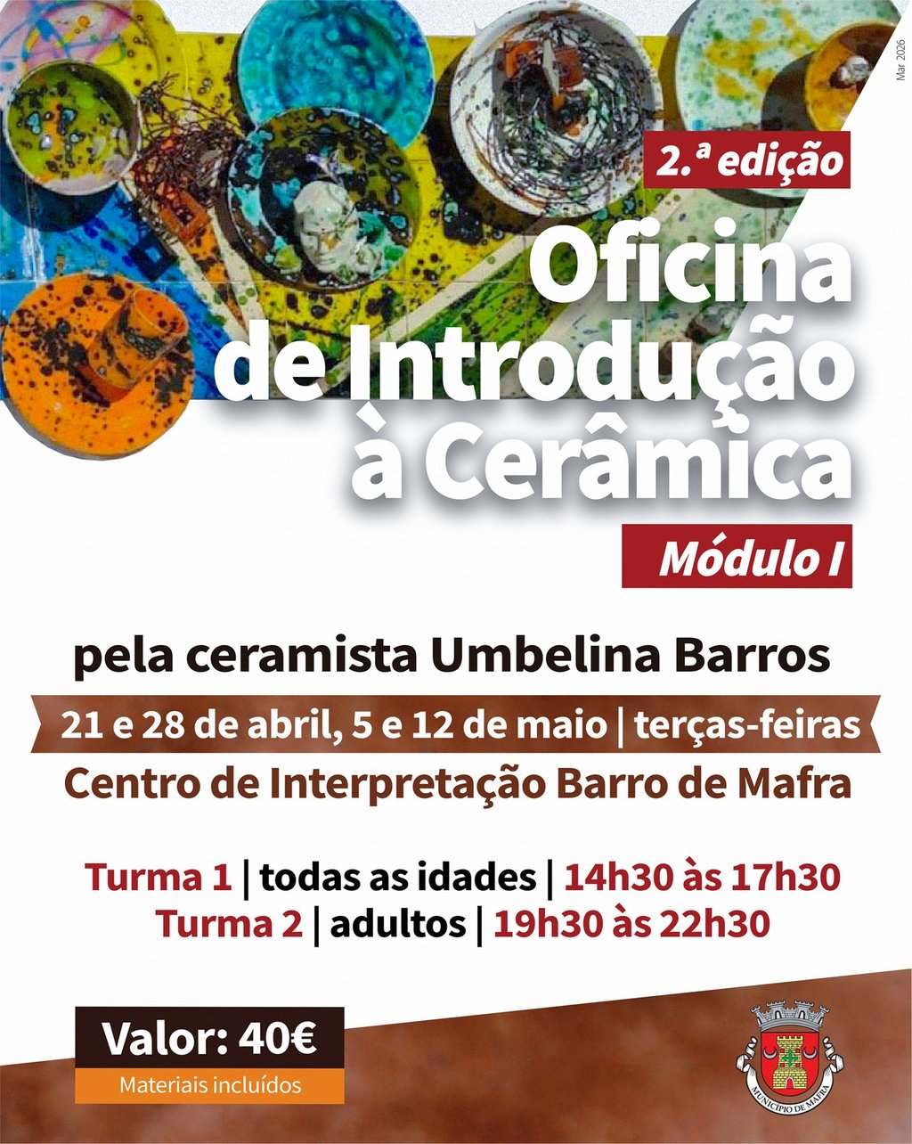 Adicionar a calendário2026-04-21 00:00:002026-04-21 00:00:00Europe/LisbonOficina de Introdução à CerâmicaMódulo I – 2.ª ediçãoCentro de Interpretação Barro de Mafra