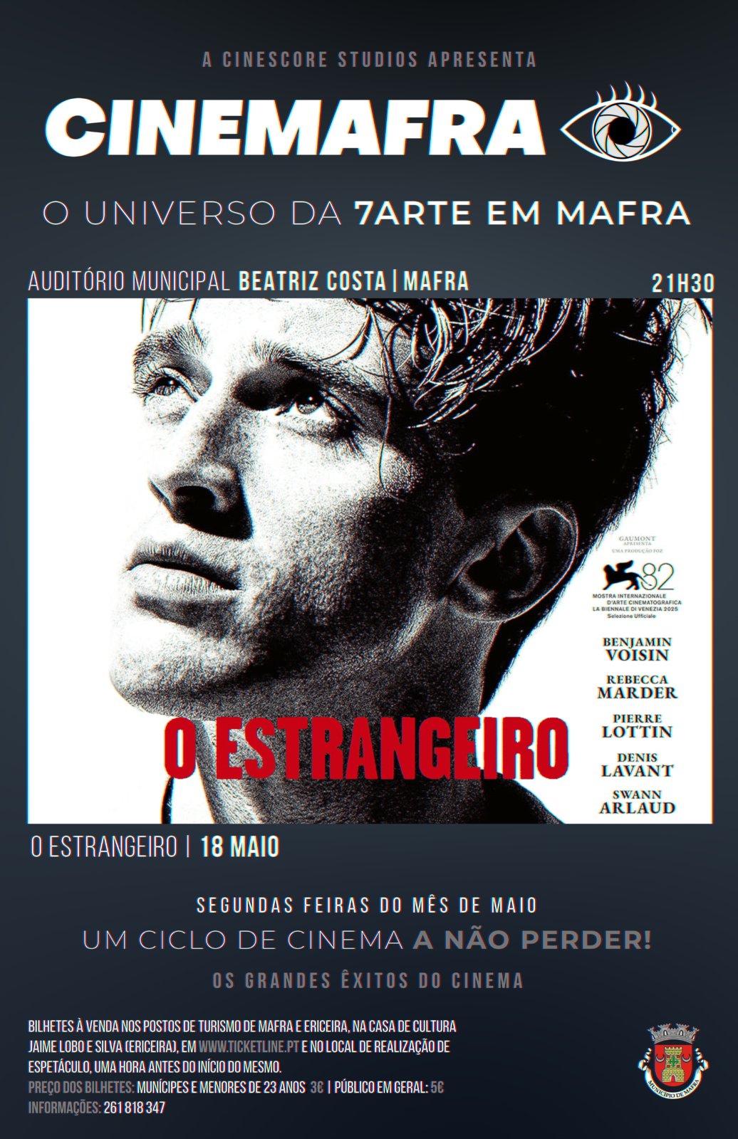 Adicionar a calendário2026-05-18 00:00:002026-05-18 00:00:00Europe/LisbonCineMafra “O Estrangeiro”, de François OzonAuditório Municipal Beatriz Costa - Mafra
