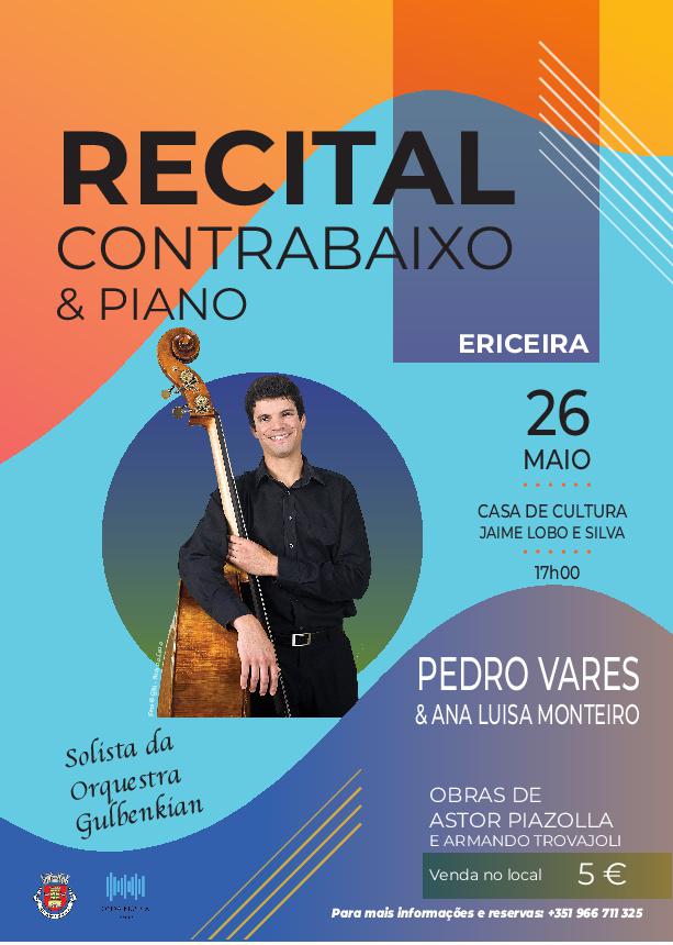 Adicionar a calendário2019-05-26 17:00:002019-05-26 17:00:00Europe/LisbonRecital de Contrabaixo & PianoPedro Vares & Ana Luísa MonteiroAuditório da Casa de Cultura Jaime Lobo e Silva - Ericeira