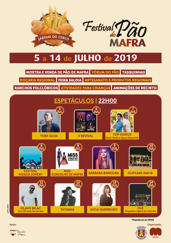 Mostra e venda de pão de Mafra | Fórum do pão | Tasquinhas | Doçaria regional | Feira saloia | Artesanato e produtos regionais | Oficina do pão "Mão na massa" | Jogos tradicionais | Atividades para crianças | Exposição de veículos e alfaias agrícolas