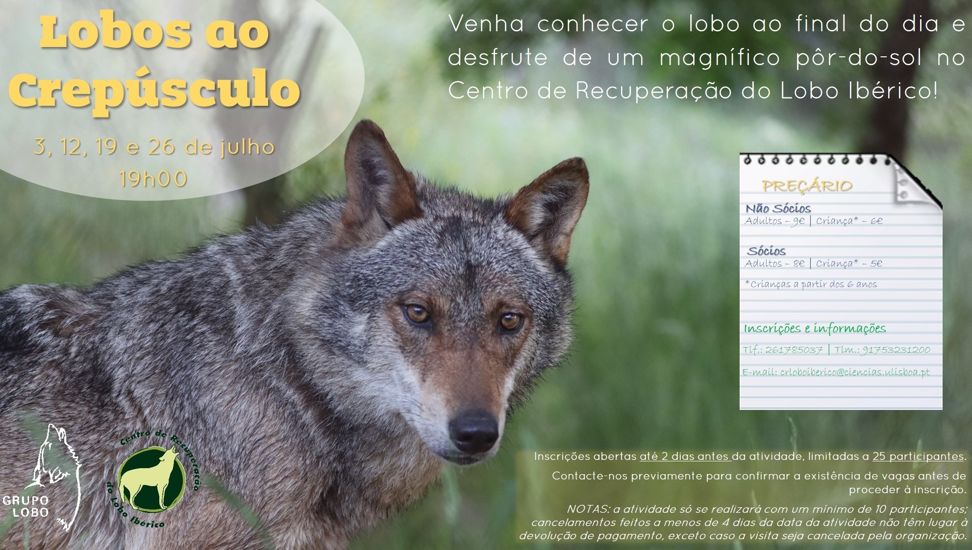 Adicionar a calendário2019-07-19 00:00:002019-07-19 00:00:00Europe/LisbonLobos ao CrepúsculoCentro de Recuperação do Lobo Ibérico - Picão - Gradil