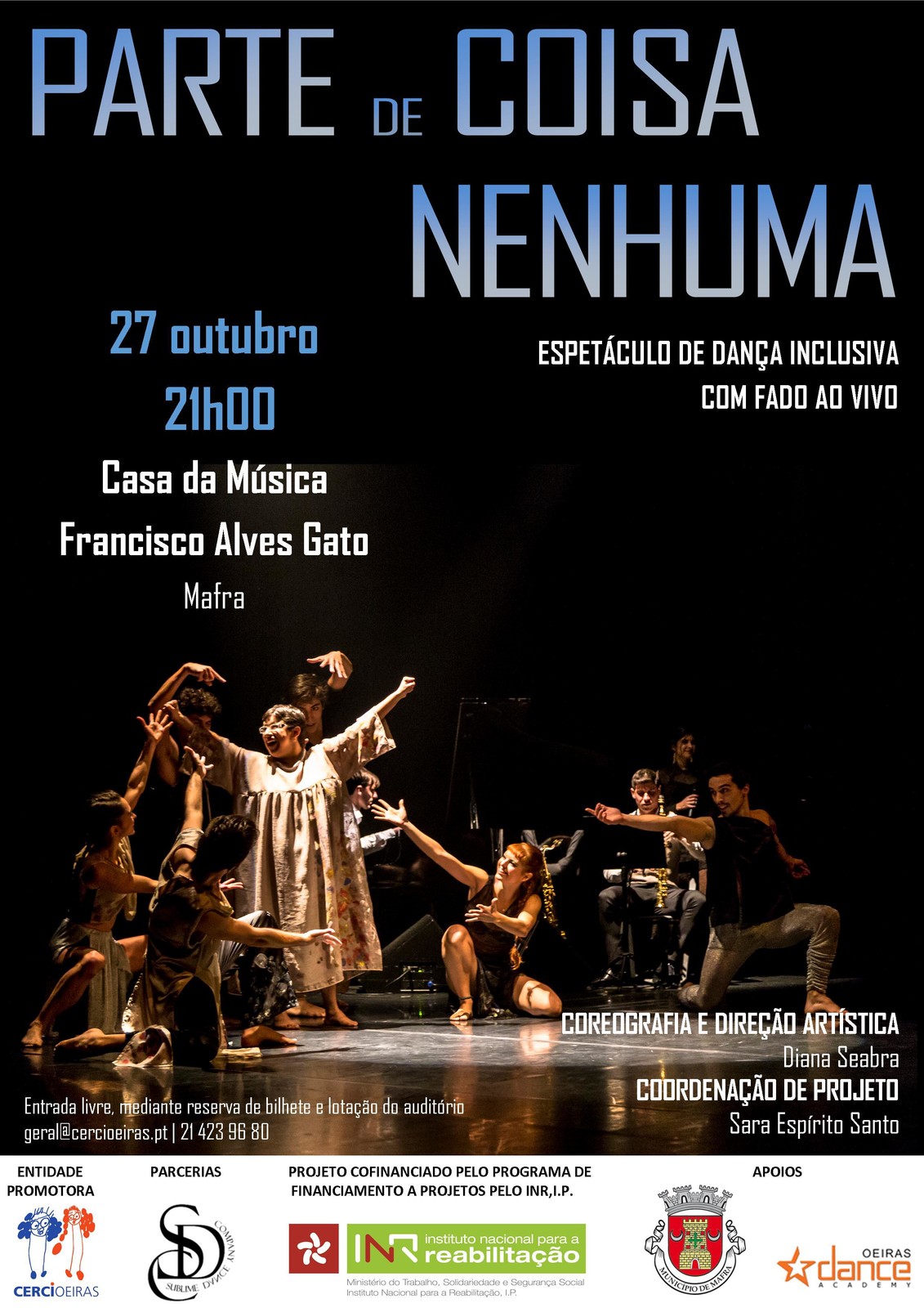 Adicionar a calendário2018-10-27 21:00:002018-10-27 21:00:00Europe/LisbonEspetáculo de Dança "Parte de Coisa Nenhuma"Dança inclusiva com fado ao vivo