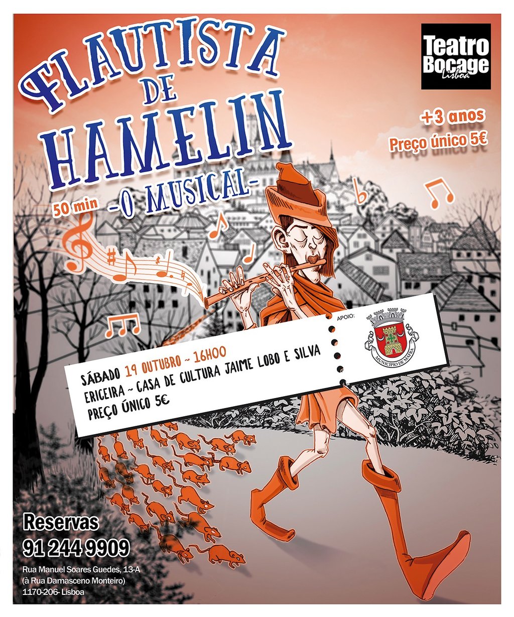 Adicionar a calendário2019-10-19 00:00:002019-10-19 00:00:00Europe/LisbonMusical Infantil "O Flautista de Hamelin"Auditório da Casa de Cultura Jaime Lobo e Silva - EriceiraTeatro Bocage Lisboa