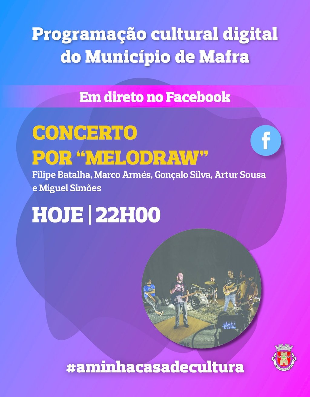 Transmissão em direto no Facebook a partir do Casa da Música Francisco Alves Gato - Mafra No âmbito da Programação Cultural Digital do Município de Mafra #aminhacasadecultura