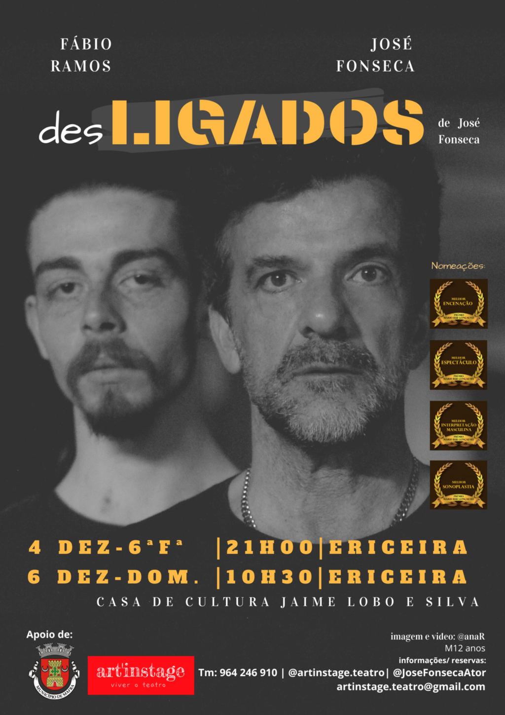 Informações e reservastlm.: 964 246 910e-mail: artinstage.teatro@gmail.com