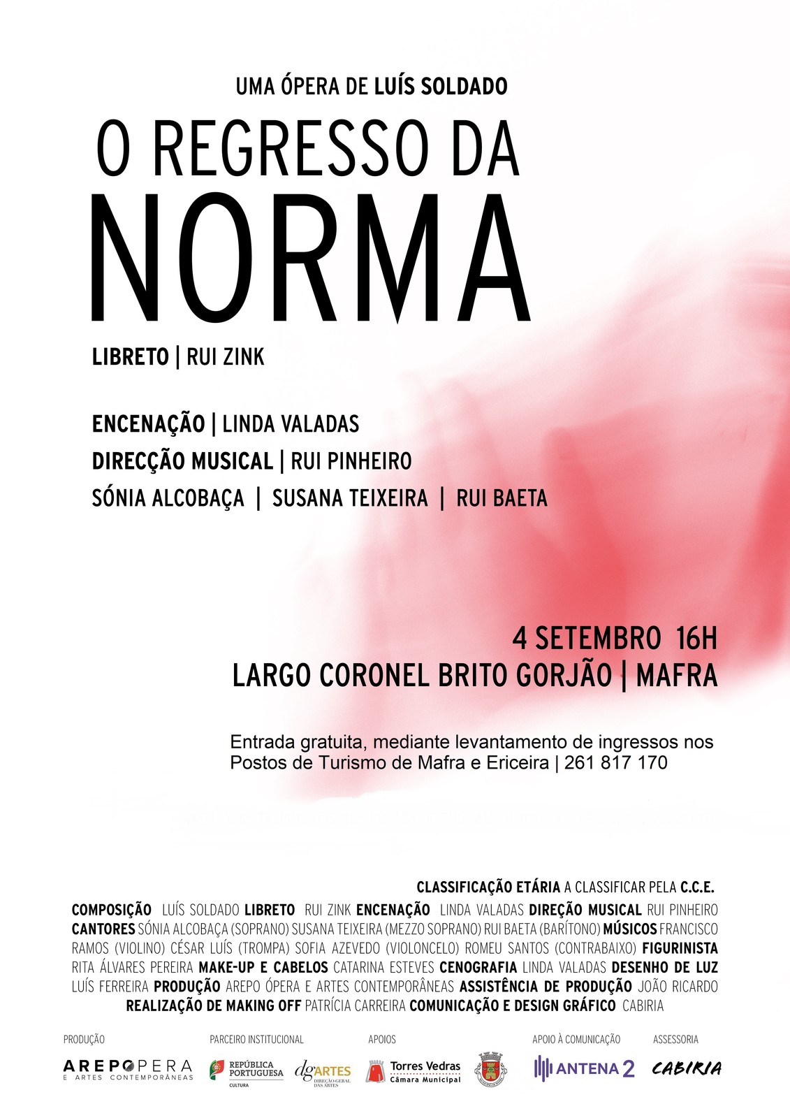 Entrada livre mediante reserva obrigatóriaIngressos disponíveis nos Postos de Turismo de Mafra e Ericeira