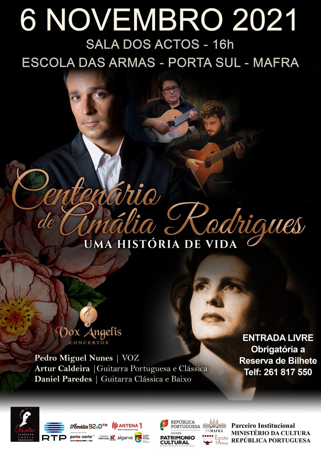 Adicionar a calendário2021-11-06 00:00:002021-11-06 00:00:00Europe/LisbonCentenário de Amália Rodrigues "Uma História de Vida"Sala dos Actos Literários - Escola das Armas (entrada pelo Claustro Sul)Vox Angelis Concertos