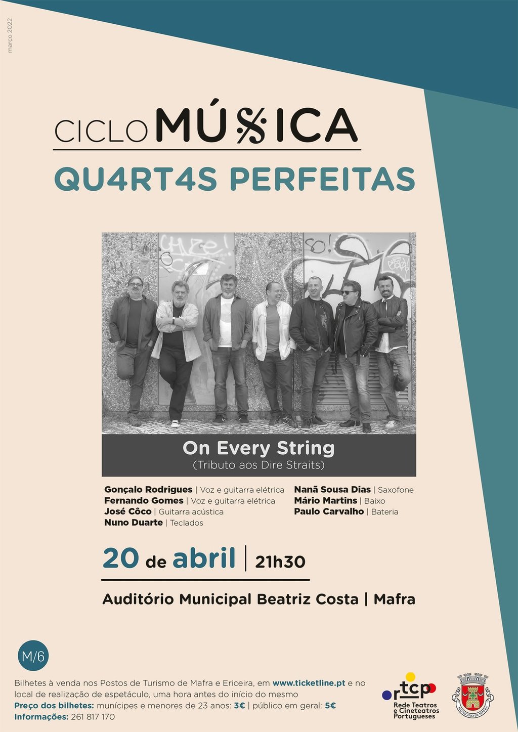 Bilhetes à venda nos postos de Turismo de Mafra e Ericeira, em www.ticketline.pt e no local de realização do concerto, uma hora antes do início do espetáculo.