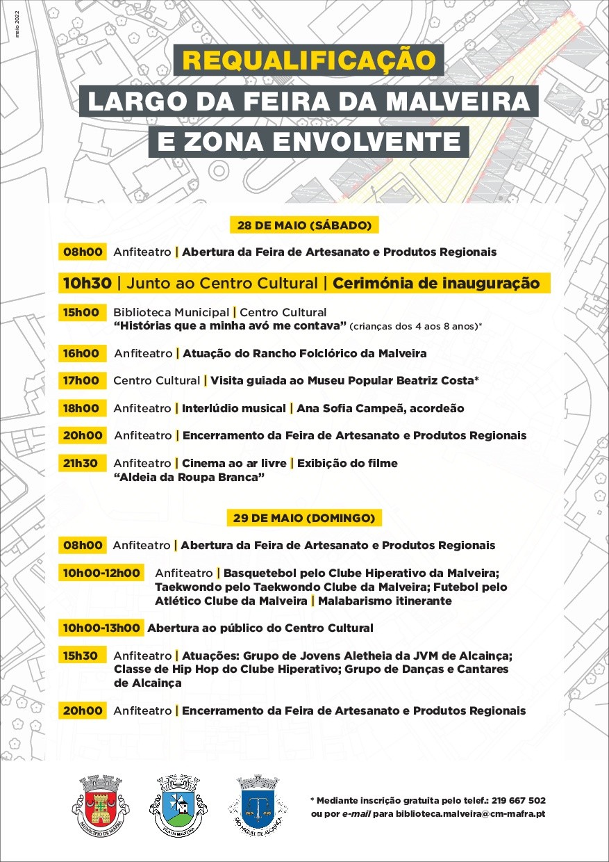 A Câmara Municipal de Mafra e a União das Freguesias de Malveira e São Miguel de Alcainça assinalam a requalificação do Largo da Feira da Malveira e zona envolvente com um programa composto por um conjunto de atividades diversificadas