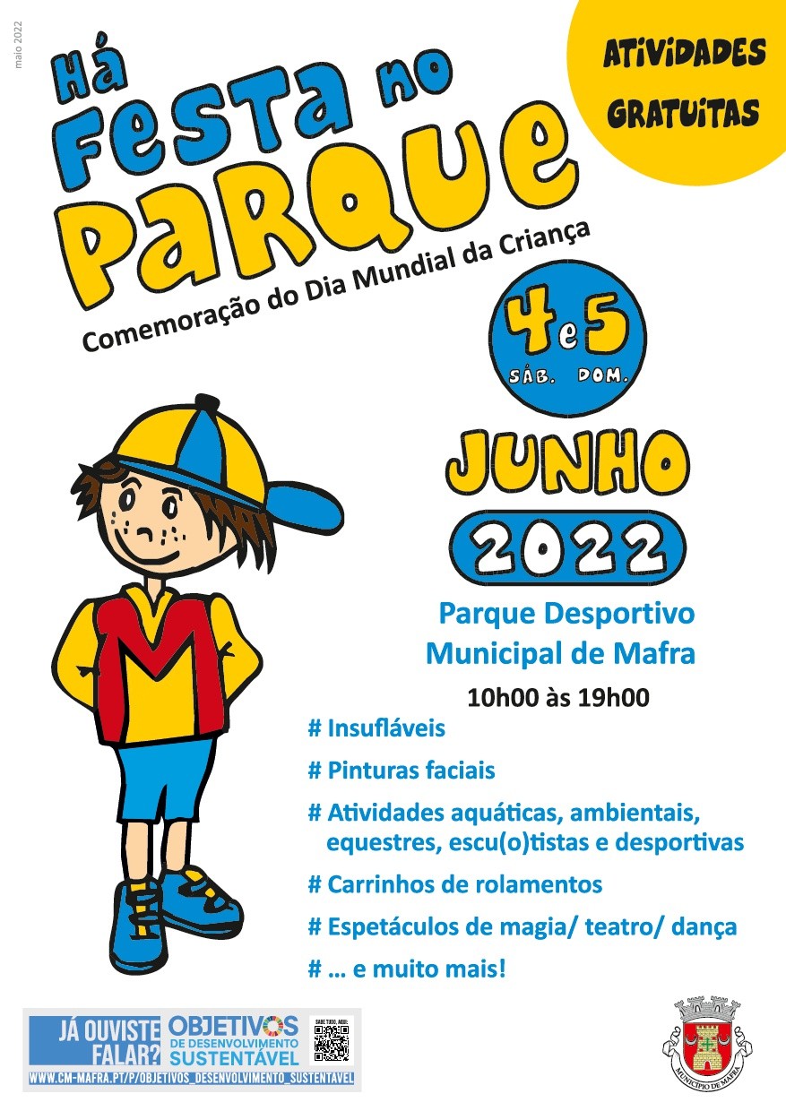 Adicionar a calendário2022-06-04 00:00:002022-06-05 00:00:00Europe/LisbonComemoração do Dia Mundial da CriançaParque Desportivo Municipal de Mafra