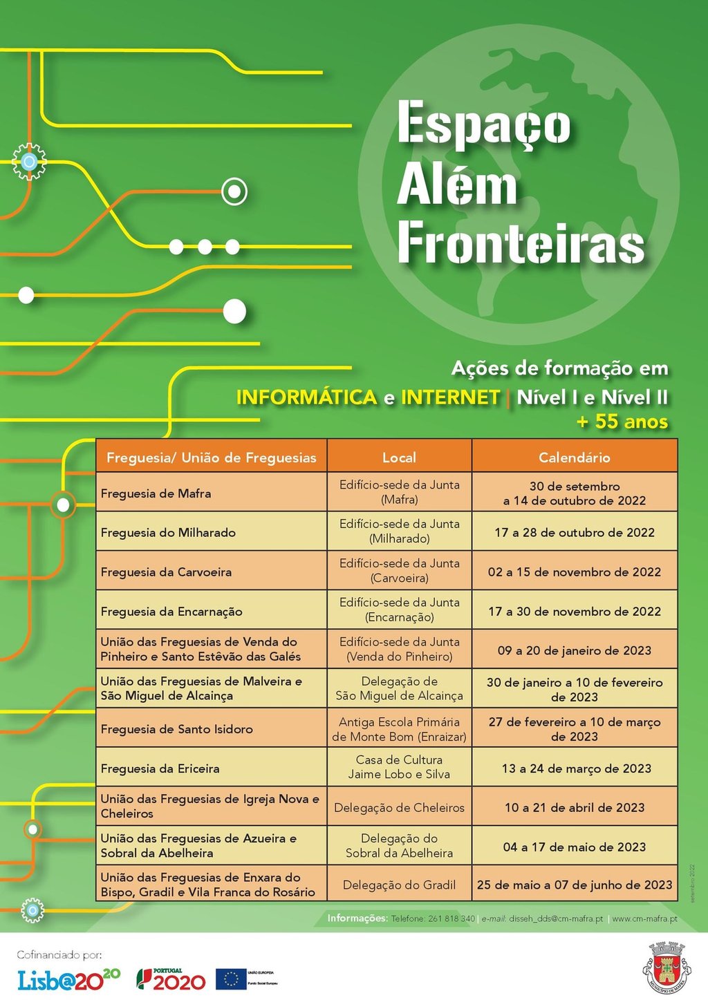As inscrições decorrem até 5 dias antes da data de início de cada turno, mediante entrega da ficha de inscrição nos espaços das Juntas/ Uniões de Freguesia, no balcão de atendimento do Edifício Boavista (Serviços de Ação Social) da Câmara Municipal de Mafra ou em www.cm-mafra.pt em "Inscrições online".
